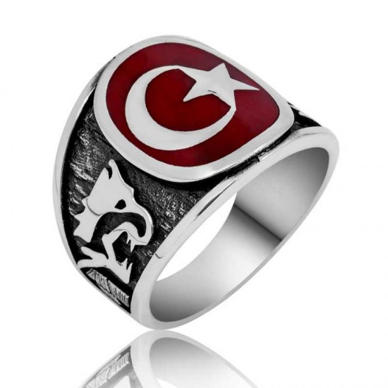 Gümüş Türk Bayrağı Ay Yıldız Erkek Yüzük