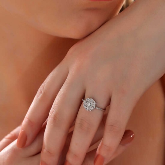 Gümüş Zirkon Taşlı Çiçek Kadın Yüzük
