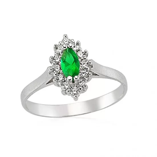 Gümüş Yeşil Mekik Bayan Yüzük